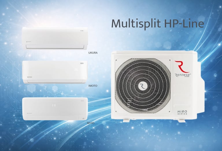 Séria HP-Line (High Performance) predstavuje technologickú špičku v ponuke Rotenso. Nejde len o obyčajnú klimatizáciu – ide o plnohodnotné tepelné čerpadlo vzduch-vzduch, ktoré je primárne vyvinuté pre maximálny výkon v najnáročnejších podmienkach. Technológia tepelného čerpadla: Na rozdiel od bežných systémov je rada HP-Line optimalizovaná tak, aby nestrácala výkon ani pri extrémnych mrazoch. Vďaka špičkovým komponentom a inteligentnému riadeniu dosahuje najvyššiu energetickú triedu A+++, vysoké SEER a SCOP z nej robí jeden z najúspornejších spôsobov chladenia a vykurovania na trhu. Hodnotenie pre kúrenie: Táto rada je pripravená na extrémne mrazy až do -25 °C (krátkodobo až -30 °C). Aj pri takto nízkych teplotách si udržiava vysoký vykurovací faktor, čím zabezpečuje tepelný komfort v celom objekte. Ohrev vaničky vonkajšej jednotky a ohrev kľukovej skrine kompresora garantuje plný výkon v extrémnych mrazoch. Pre koho: Najlepšia voľba pre tých, ktorí hľadajú primárny zdroj tepla. HP-Line je nekompromisné riešenie pre moderné domy alebo menšie prevádzky, ktoré chcú spojiť maximálnu ekológiu, úsporu nákladov a extrémnu odolnosť voči zime.