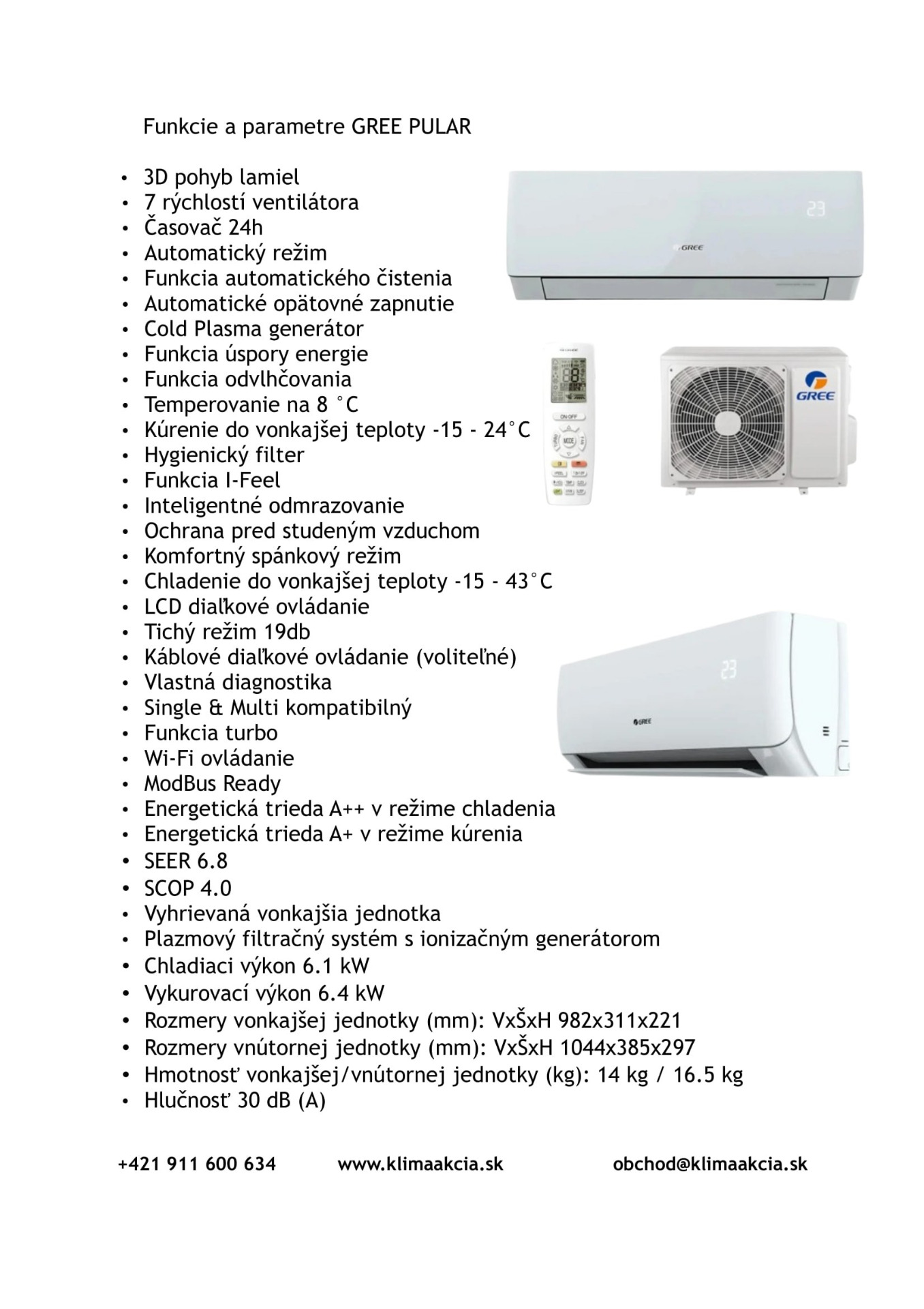 čistenia, WiFi, vyhrievaná vonkajšia jednotka a mnoho iných funkcií