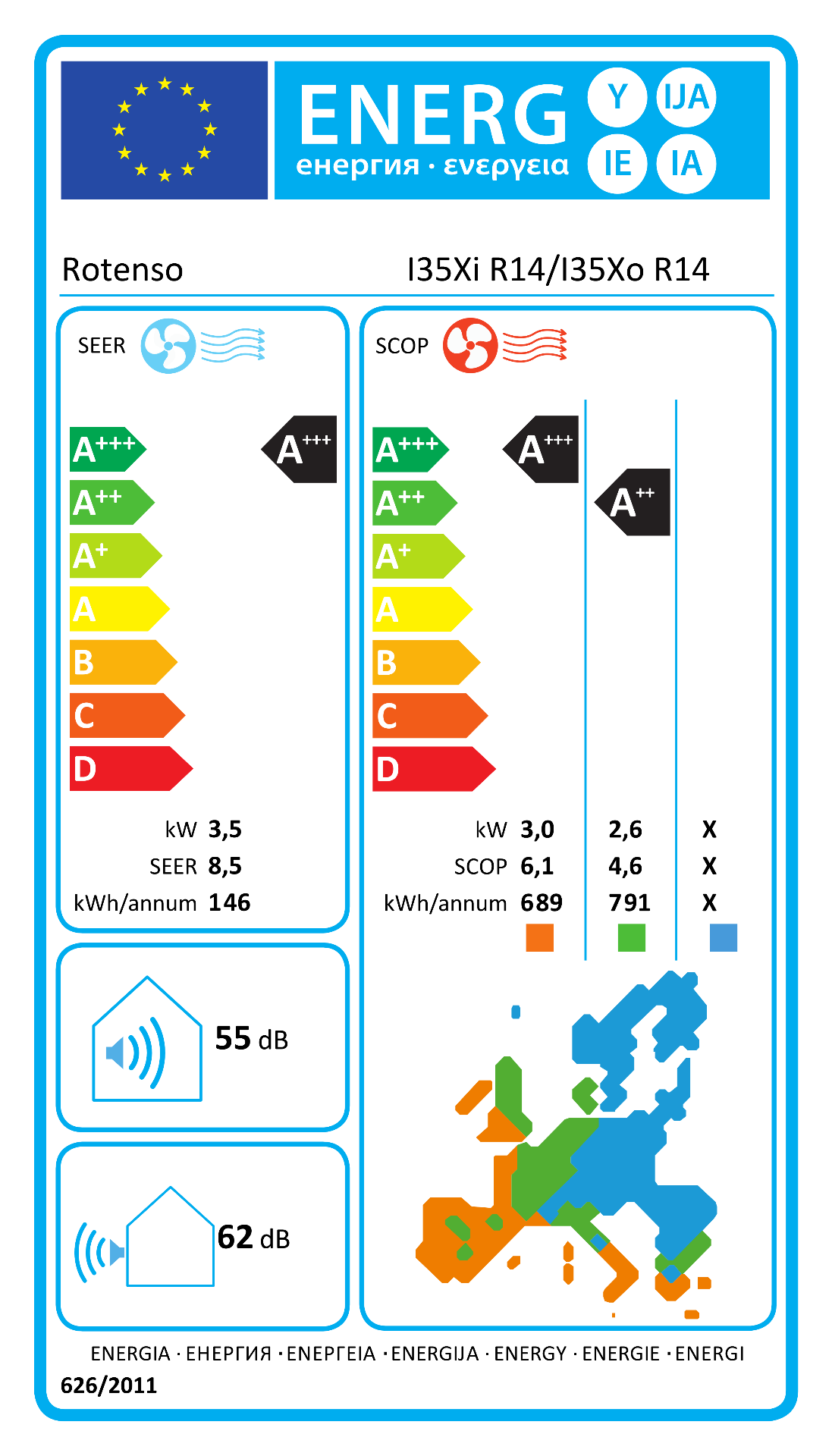 Set: vonkajšia + vnútorná jednotka, A+++/A++, 3.5kW, SEER 8.5 / SCOP 4.6 (chladenie/vykurovanie), celoročné využitie na chladenie a vykurovanie, 3